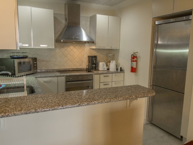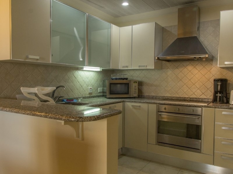 It is a lovely 1,050 squarefoot One Bedroom unit located on the 2nd Floor of White Sands Beach Condos. Despite being a One Bedroom, it has 2 full bathrooms. The finishes are superb and give a truly luxurious experience. It has a large terrace with a ceiling fan, a fully equipped kitchen (with stainless steel SMEG appliances), Air Conditioning throughout. Partial ocean view. One parking space comes with the unit.