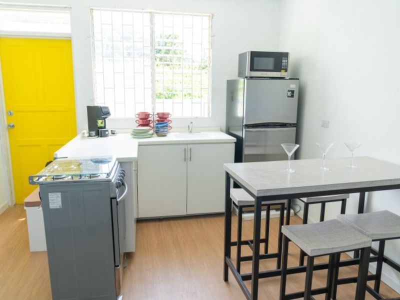 This charming apartment boasts open-concept living spaces, a well-equipped kitchen, a spacious air-conditioned bedroom, and a modern 3-piece bathroom. For peace of mind, the apartment is equipped with wrought iron security bars and comes with one dedicated parking space. Rent includes water, Wi-Fi and quarterly pest control. Well-behaved, house-trained pets are welcome but must be kept indoors. This is a no smoking apartment and is suitable for a couple with no children.