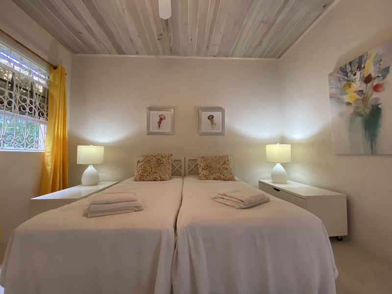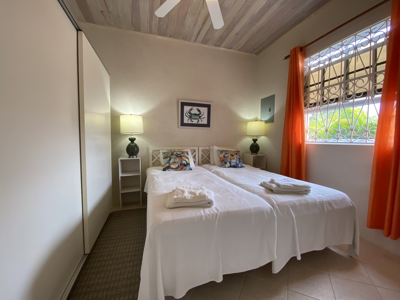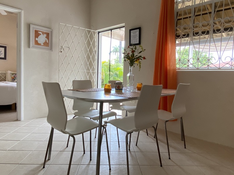 This nicely decorated apartment is fully furnished and includes all the basic amenities such as fully equipped kitchen, cable tv, Wi-Fi, and a washer. The living room/dining room area has an AC unit however the Master bedroom is the only bedroom equipped with an AC Unit. There are fans in most rooms to keep you cool on a hot summer day. For those of you who want to venture out, there is a bus stop to access the public transportation in the form of a ZR van located right in front of the property or you can walk about 5 mins to another bus stop on the main South Coast road and access the mini vans or Government buses which can take you either to Bridgetown, Speightstown or Oistins. The property is also 2 minutes walk to Rockley Golf Course for any avid golfers.