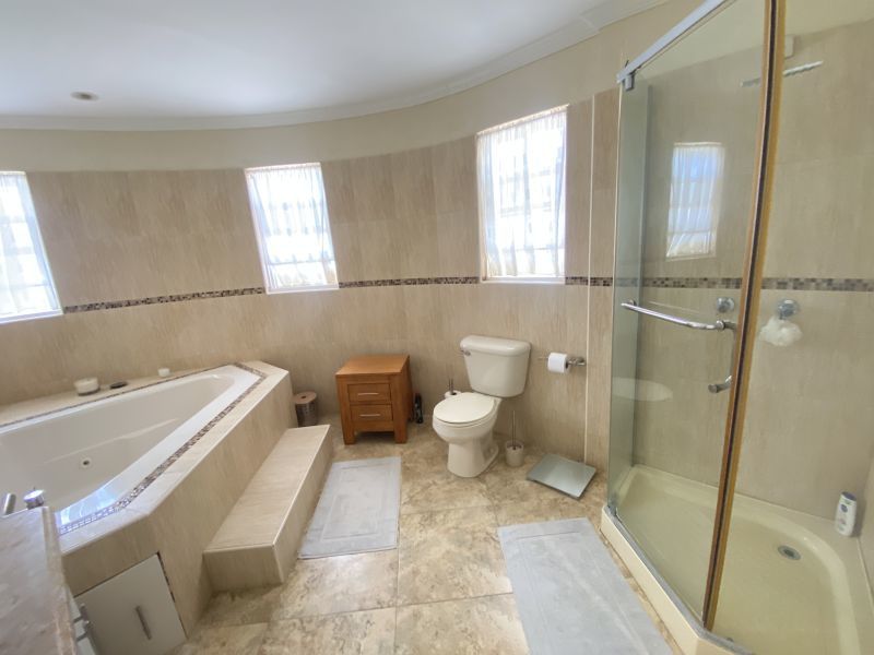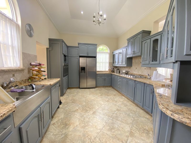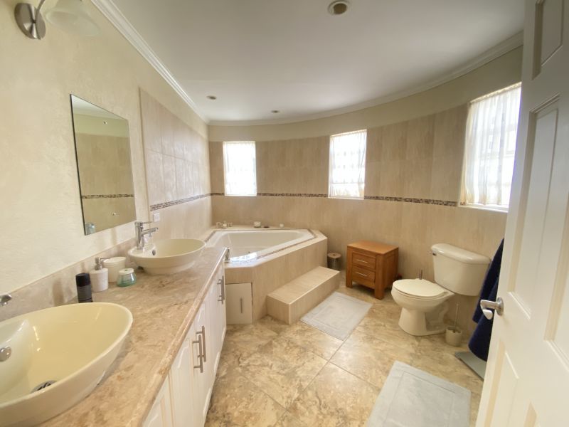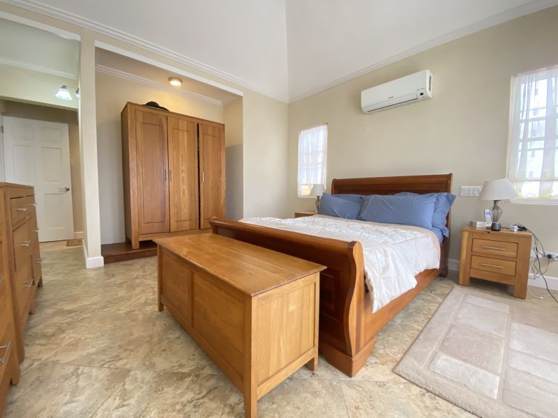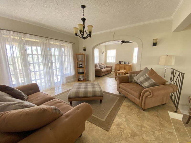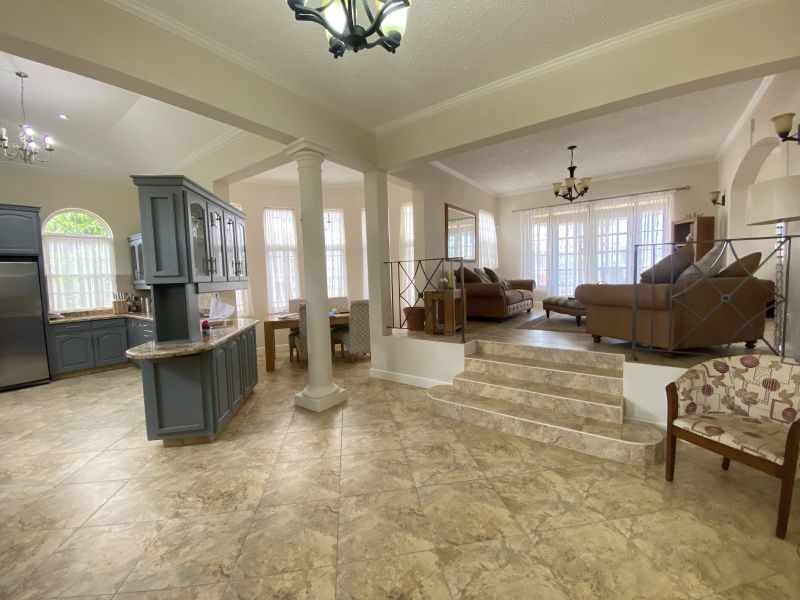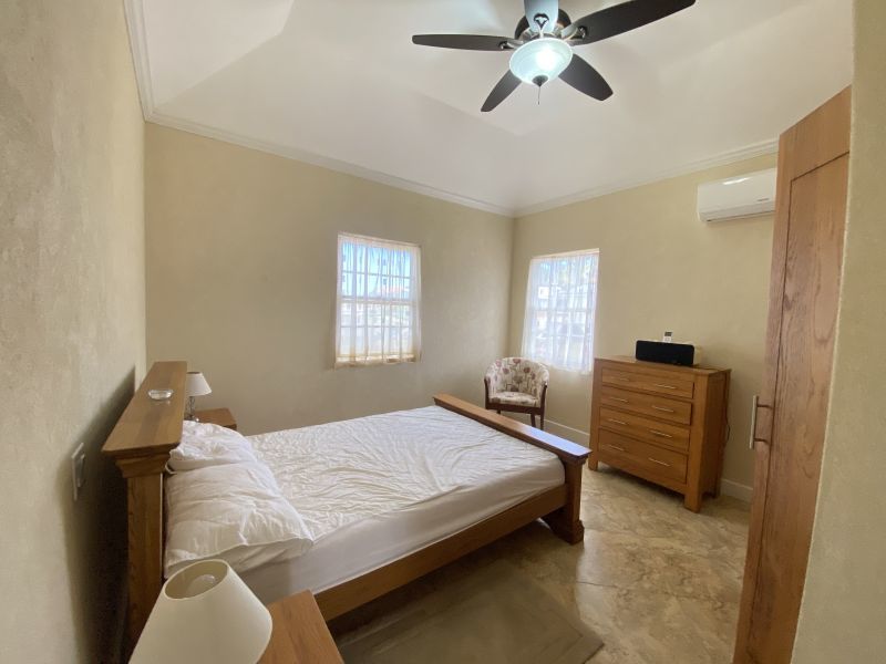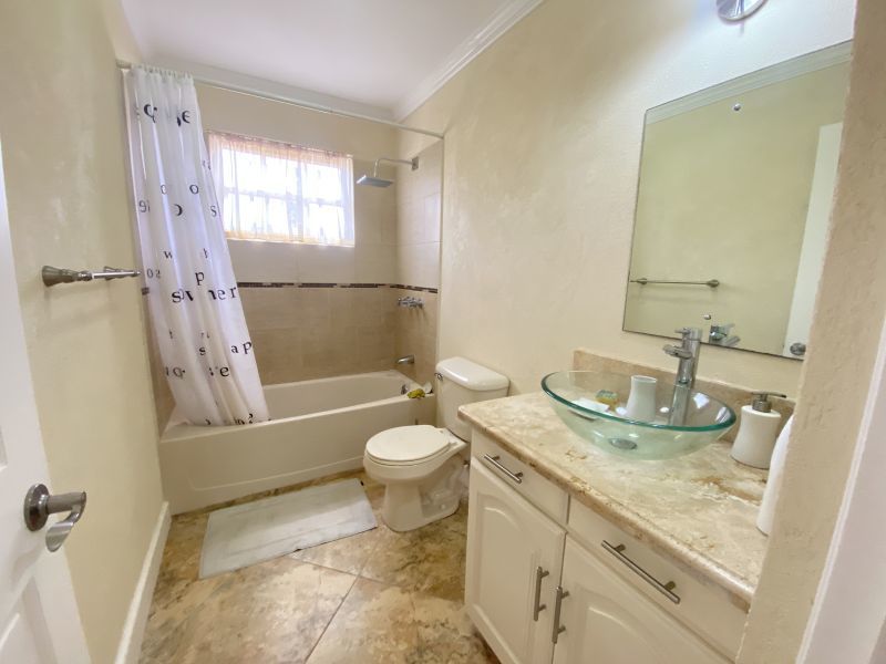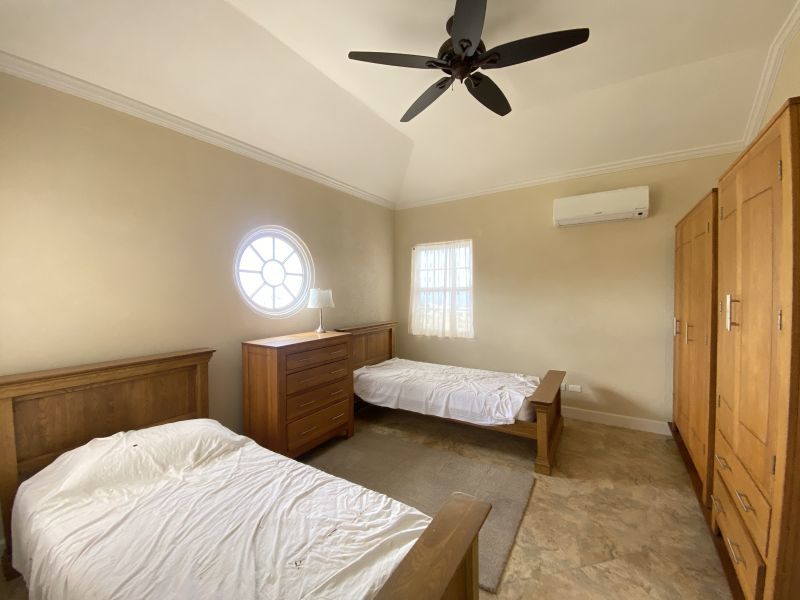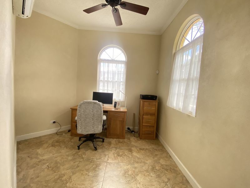 This well-maintained property offers spacious open-plan living areas that seamlessly blend the living room, dining area, and kitchen, creating an inviting atmosphere for gatherings and relaxation. The heart of the home is the modern kitchen, which has been recently renovated and is adorned with sleek granite countertops and equipped generous storage cupboards, illuminated to enhance visibility, ensuring that organization is effortless and convenient. There is a dedicated laundry room. The master bedroom is a sanctuary of luxury, featuring an ensuite bathroom complete with a rejuvenating jacuzzi tub, a walk-in closet and is air-conditioned ensuring comfort year-round. Two additional bedrooms, also air-conditioned, offer cozy retreats for family members or guests and share a bathroom. An air-conditioned office space provides a dedicated area for work or study, ensuring productivity and focus. The upstairs patio offers breathtaking ocean views and refreshing breezes.