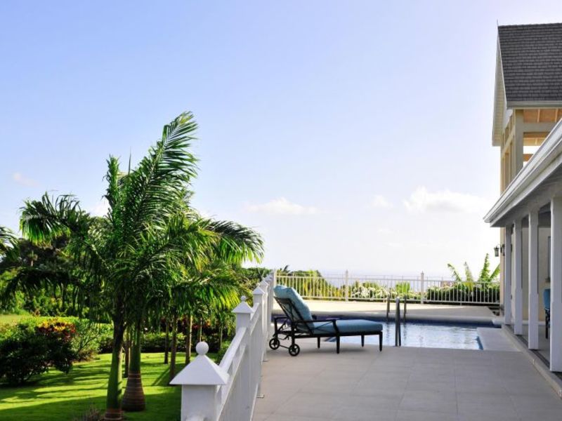 Situated in the Apes Hill Resort, this property enjoys the cooling trade winds and spectacular views from its elevated position within the resort. Built in 2017, this elegant, luxury villa features large windows and doors which allow a lot of natural light. The main level comprises the living, dining and TV areas which all open onto the expansive patio and inviting pool area, offering ample outdoor living space, ideal for entertaining. The fully equipped, spacious kitchen and an en-suite bedroom are also on this level.